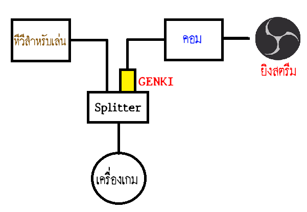 ถ้ามุมมองของเรา หากจะเอาไปสตรีมก็ใช้ได้อยู่นะ ถึงแม้ว่าภาพจะแค่ 720p ก็ตาม หากอยากเล่นแบบภาพชัดๆไปด้วย สตรีม 720p ไปด้วย ก็เพียงแค่หาพวก HDMI Splitter มาตัวนึง โดยต่อดังนี้